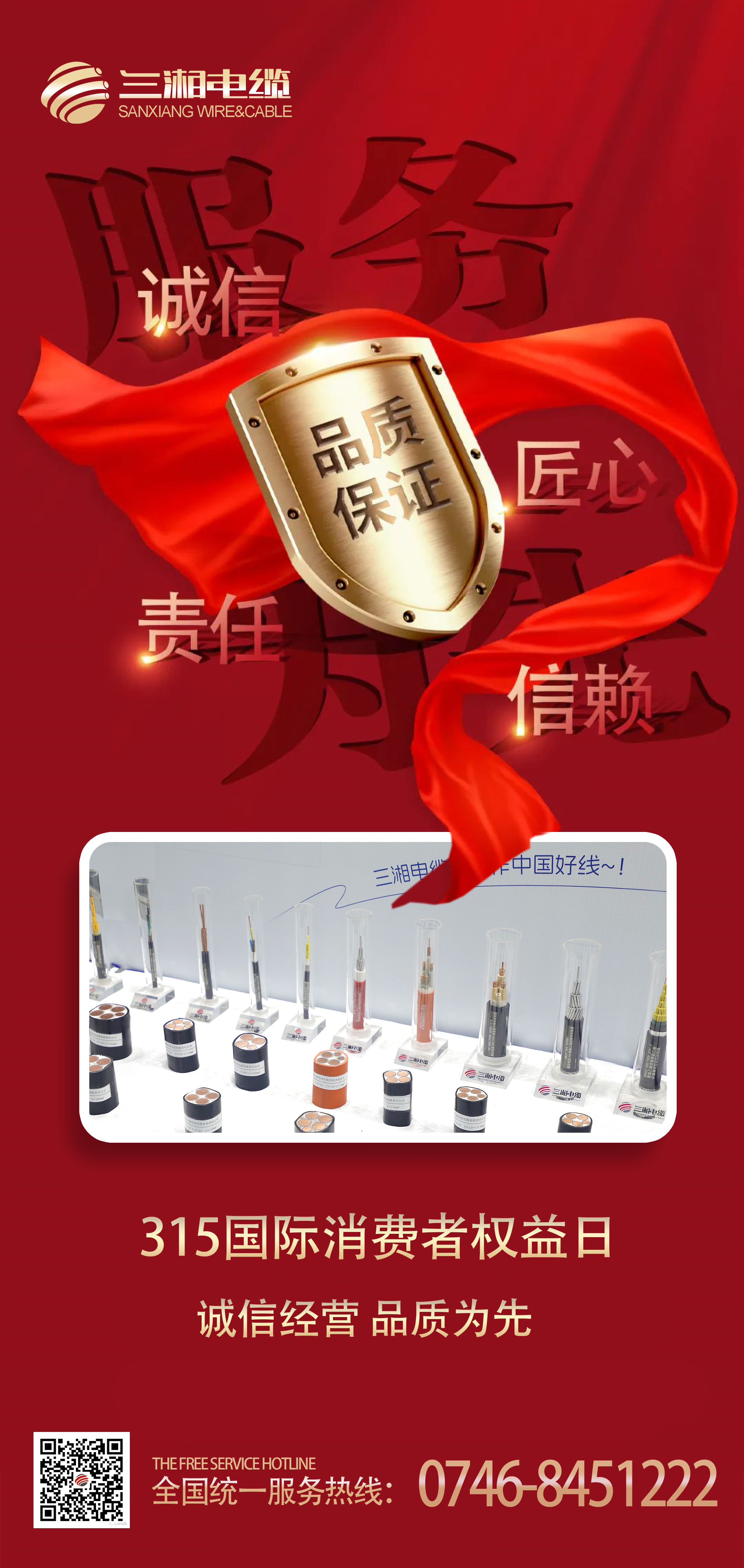 3·15消費(fèi)者權(quán)益日到了,誠(chéng)信一直是三湘電纜自始至終堅(jiān)守的使命與責(zé)任,作為高品質(zhì)電線電纜制造商,三湘電纜從1999年創(chuàng)立至今,25年來(lái)踐行誠(chéng)信的態(tài)度始終如一,堅(jiān)持以高質(zhì)量的產(chǎn)品品質(zhì)保障消費(fèi)者對(duì)線纜的需求,以“服務(wù) 品質(zhì) 誠(chéng)信 共贏”的核心發(fā)展理念贏得客戶的滿意與認(rèn)可!
